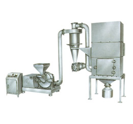 The machine consists of crushing the host, cyclones, pulse dust boxes and other parts. Material from the hopper into the crushing chamber, crushed by high-speed rotation of the hammer, smashing fineness can adjust the distance grading and classification disc cutter to achieve the desired fineness, crushed material transfer centrifugal force and effect into the induced draft fan cyclone, and then, by turning the fan discharge, pulse dust dust into the box, and after the filter cartridge filter recycling. The aircraft according to "GMP" standard design, machine all with stainless steel, no dust during grinding.